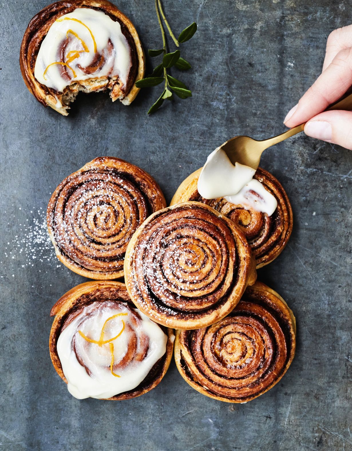 - Sekoita kuorrutteen aineet tasaiseksi seokseksi. Jos jogurtti on hyvin juoksevaa, lisää tomusokerin määrää. Lusikoi kuorrutus jäähtyneille pullille.