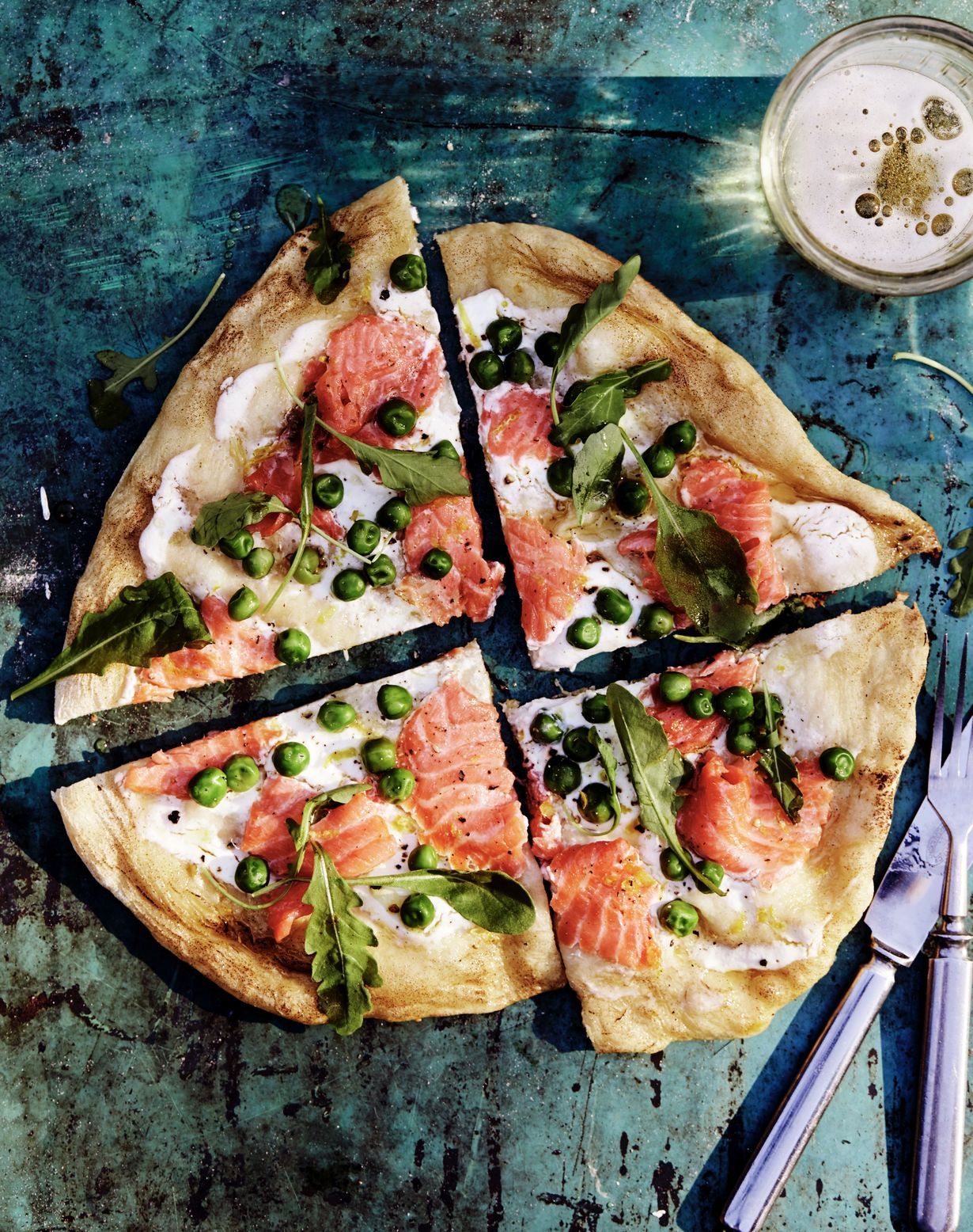 Lohipizzan täytteet pysyvät raikkaina, kun esipaistat pohjan. Täytteet käyvät grillissä vain kuumenemassa.