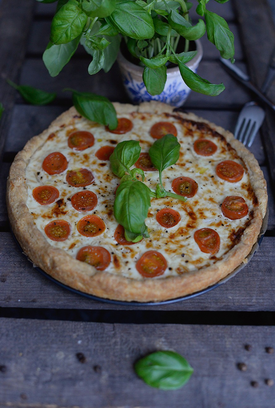 Tämä maistuu ympäri vuoden. Kesällä tekisin suomalaisen sadon tomaateista, mutta talvella voi sortua hankkimaan vaikka espanjalaisia kirsikkatomaatteja jos ne ovat mehukkaampia. Otit mitä tahansa, niin tässä uunipiiraassa ne tulevat silti astetta mehukkaimmiksi! Lopuksi piiraan kanssa nautittu tuore basilika tuo kesän myös talven keskelle.