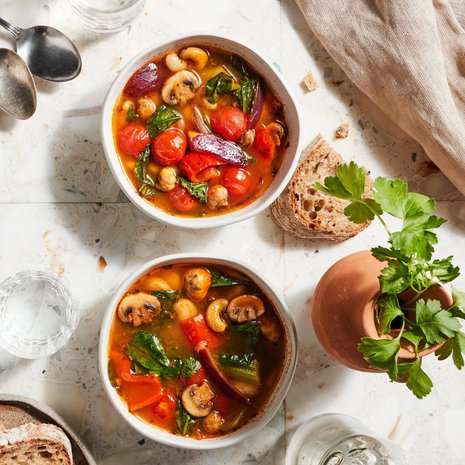 Yhdistä ricotta, ranskakerma ja suola. Halkaise broccolinit ja pyörittele öljyssä.