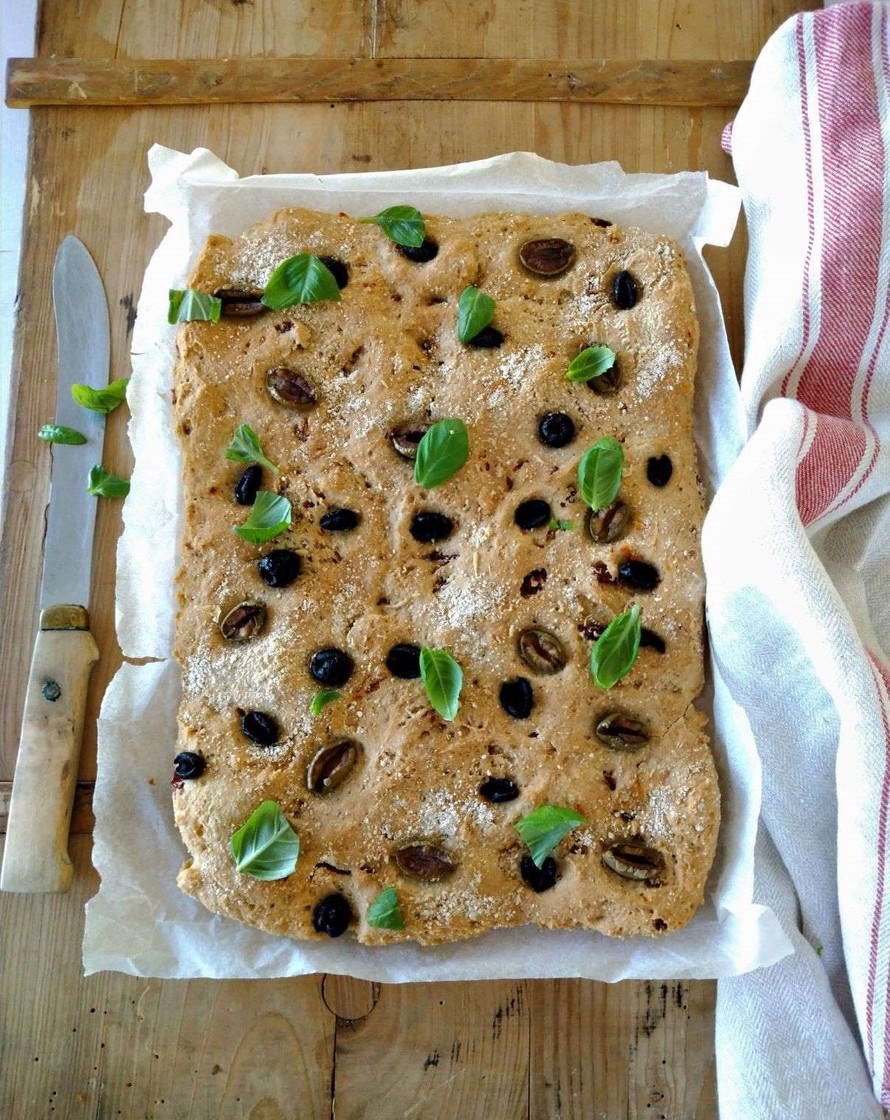Aito italialainen focaccia on ohuehko ja kuohkea leipä jonka päällä voi olla esimerkiksi oliiveja ja yrttejä. Tällä reseptillä leivot kuohkean, maukkaan ja gluteenittoman focaccian - vaikka gluteenittomat jauhot asettavat aina leipomiseen haasteita. Alkuperäisen reseptin löydät täältä: http://www.bilberryhill.fi/blogi-reseptit.