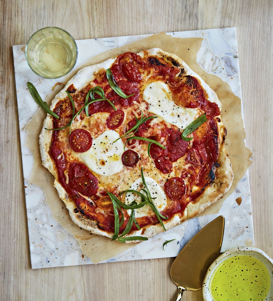 Vinkki! Täytä pizza tomaattikastikkeella, tomaateilla ja mozzarellalla. Perinteisestä margheritasta sen erottaa tuore rakuuna.