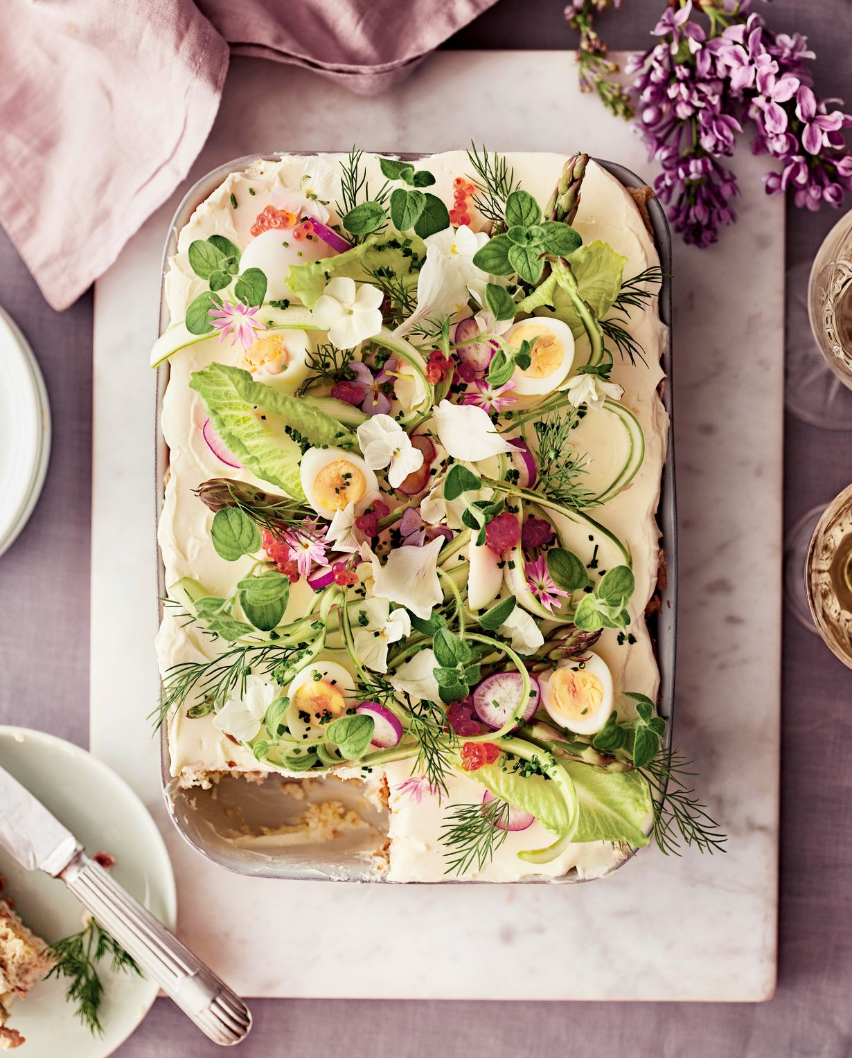 Kevään helpoin voileipäkakku kootaan vuokaan. Säilytyskin jääkaapissa onnistuu näppärästi. Mutkatonta, rentoa ja tyylikästä!