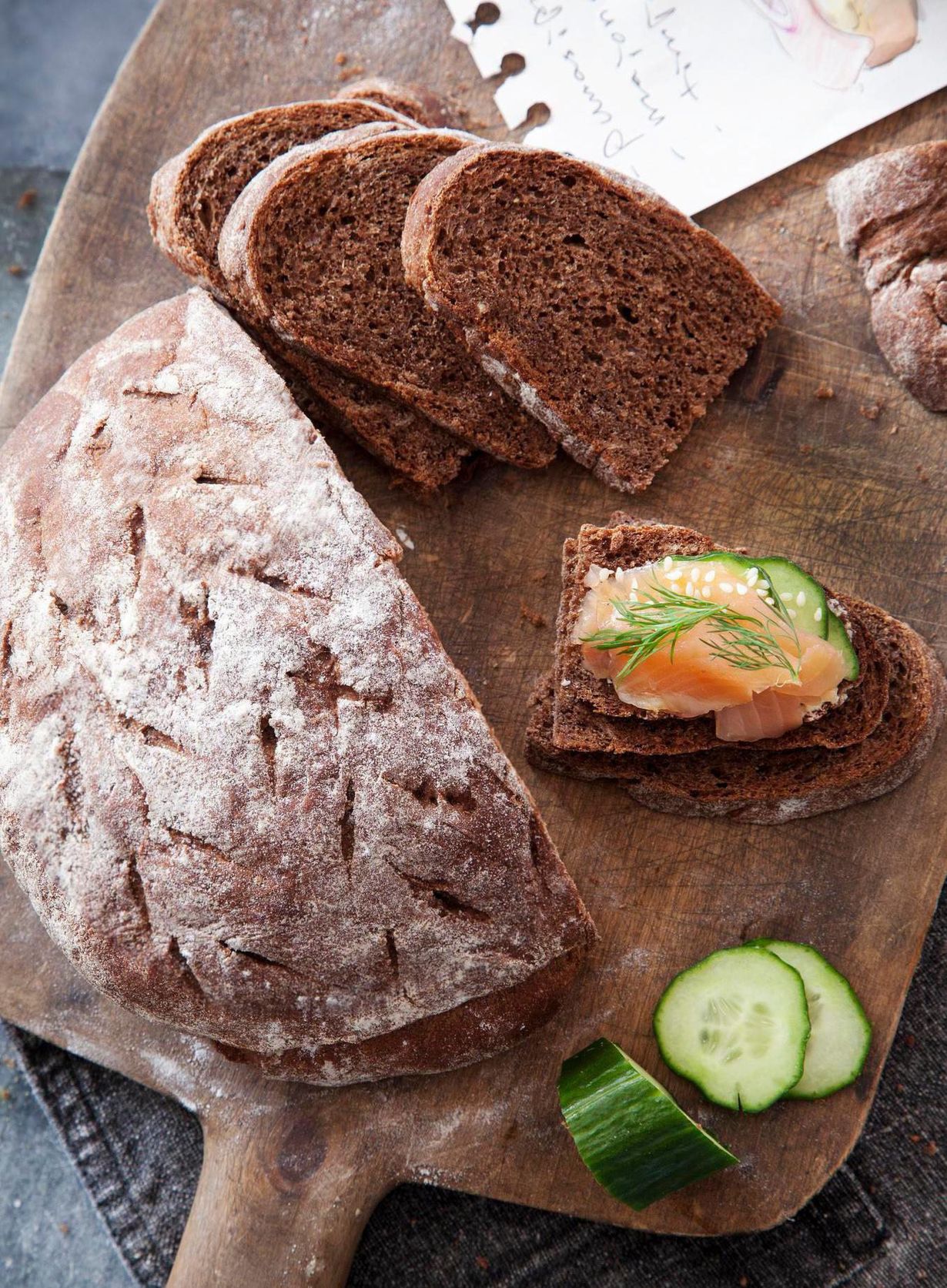 Tarjoa paahdetun voin, savulohen ja mummonkurkkujen kanssa.