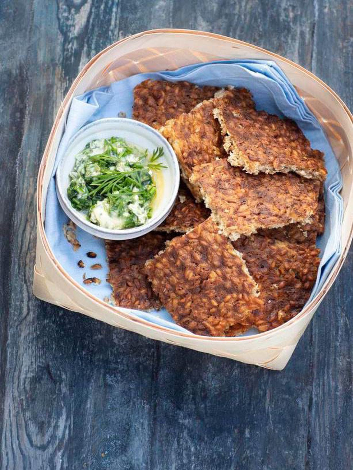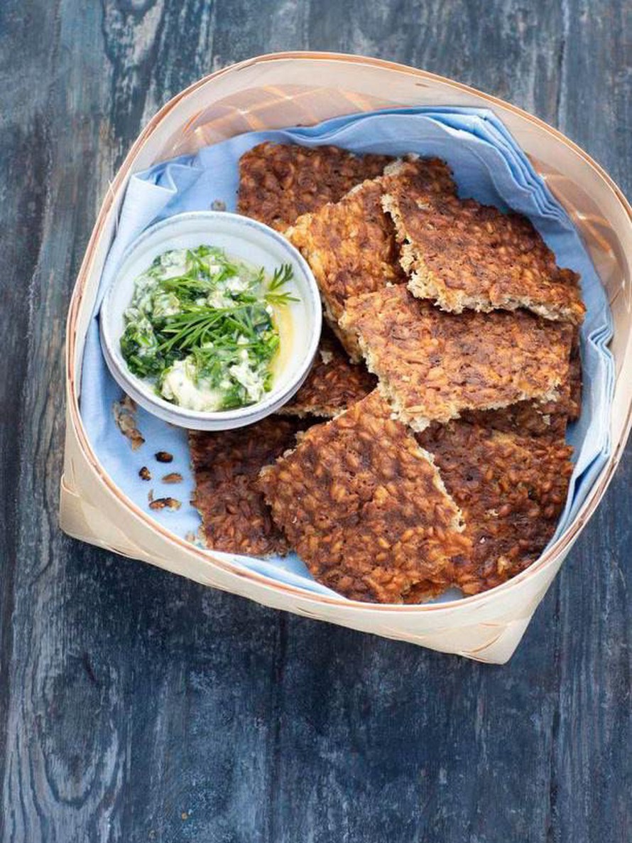 Suussa sulava pari: lämmin ohrarieska ja tuore yrttivoi.
