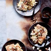 Leikkaa valkosipulien suiposta päästä pieni lakki pois. Kaada loraus oliiviöljyä sipuleiden sisään. Laita sipulit leivän viereen pellille.