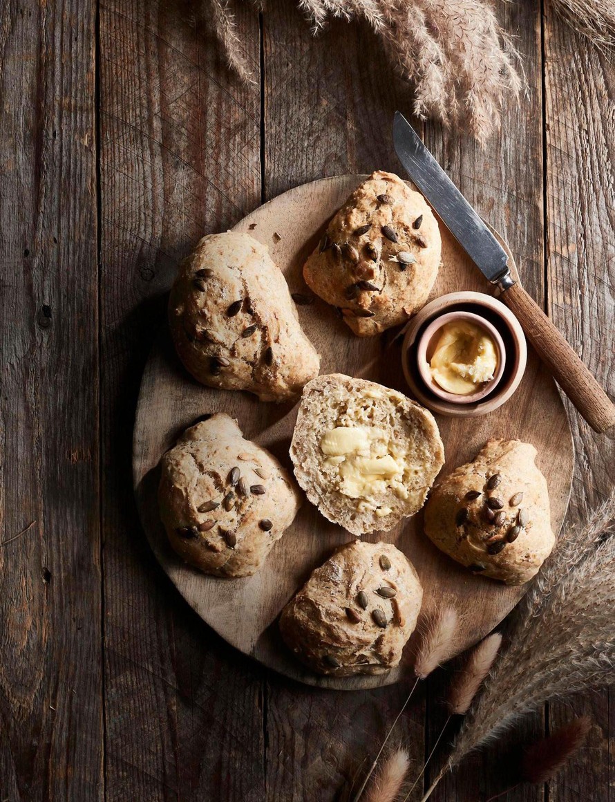 Nämä herkut syntyvät ilman vaivaamista ja sämpylöiden pyörittämistä. Inspiraationa Sikke Sumarin aikonaan omistaman Nami Namaste -majatalon rapeat aamiaissämpylät.