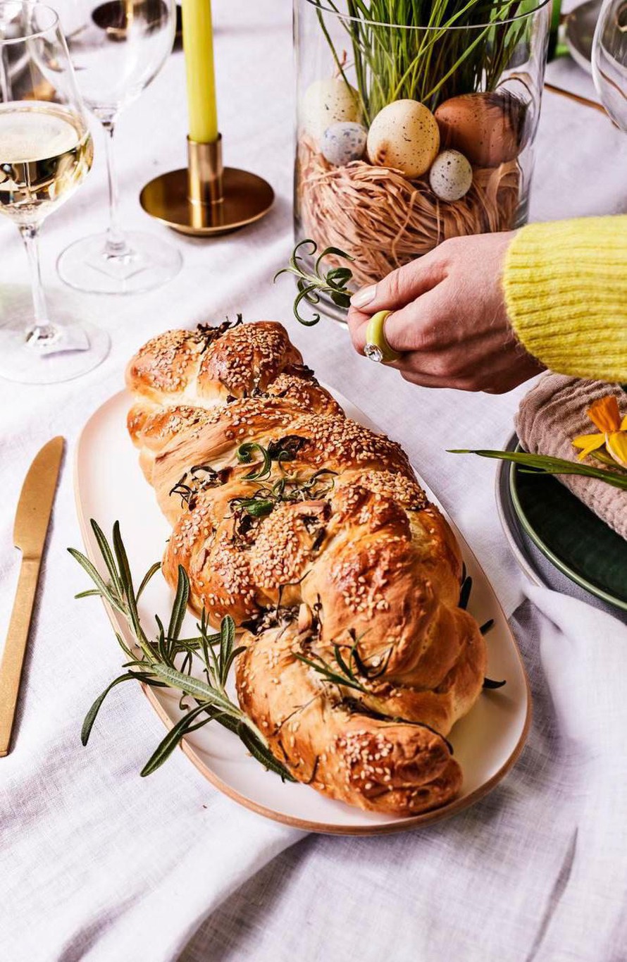 - Nosta pitko leivinpaperin päälle uunipellille. Nostata liinan alla kaksinkertaiseksi.