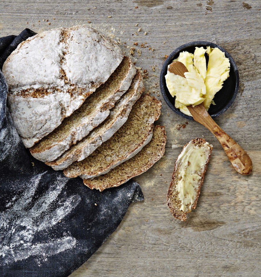 - Paista leipää uunissa noin 30–40 minuuttia. Leipä on kypsä, kun se kumisee pohjaa koputettaessa. Nosta ritilälle ja anna jäähtyä.