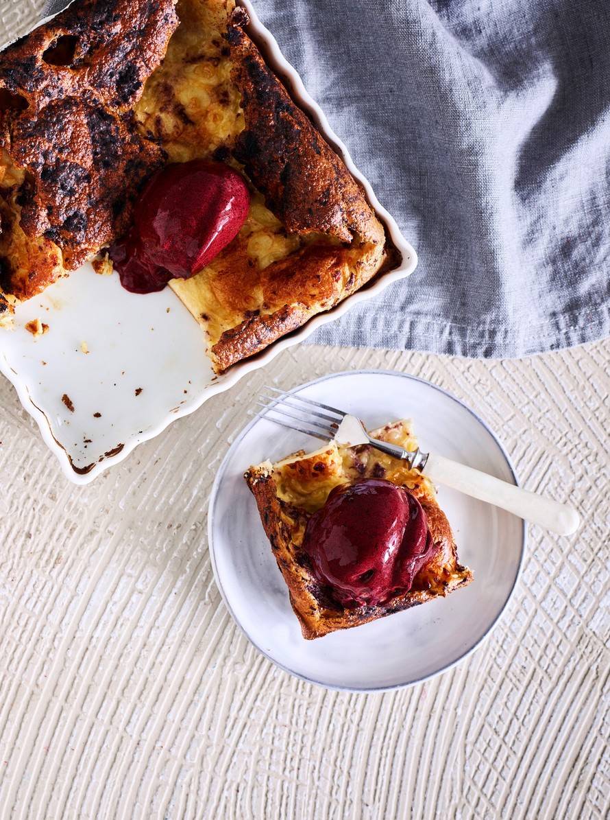 Lämpimän pannarin ja kylmän pehmiksen, eli nicecreamin yhdistelmä on herkullinen. Mustikkajauhetta voi kiepauttaa taikinan joukkoon halutessaan enemmänkin.