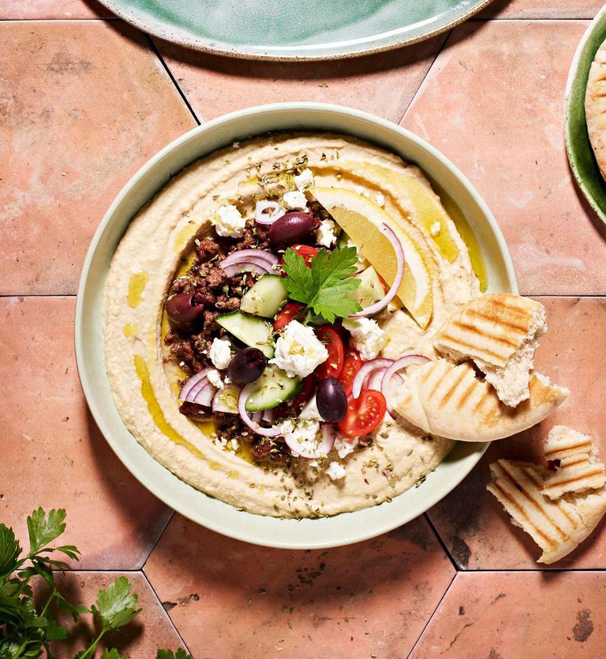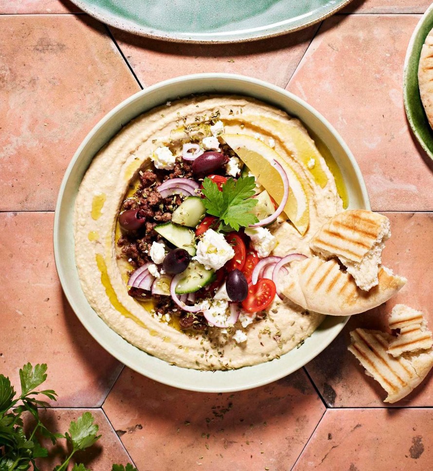 Levitä lautaselle runsaasti hummusta ja lisää päälle välimerellisiä höysteitä. Tällä herkullisella annoksella pääset kotona hummusbaarin tunnelmaan!