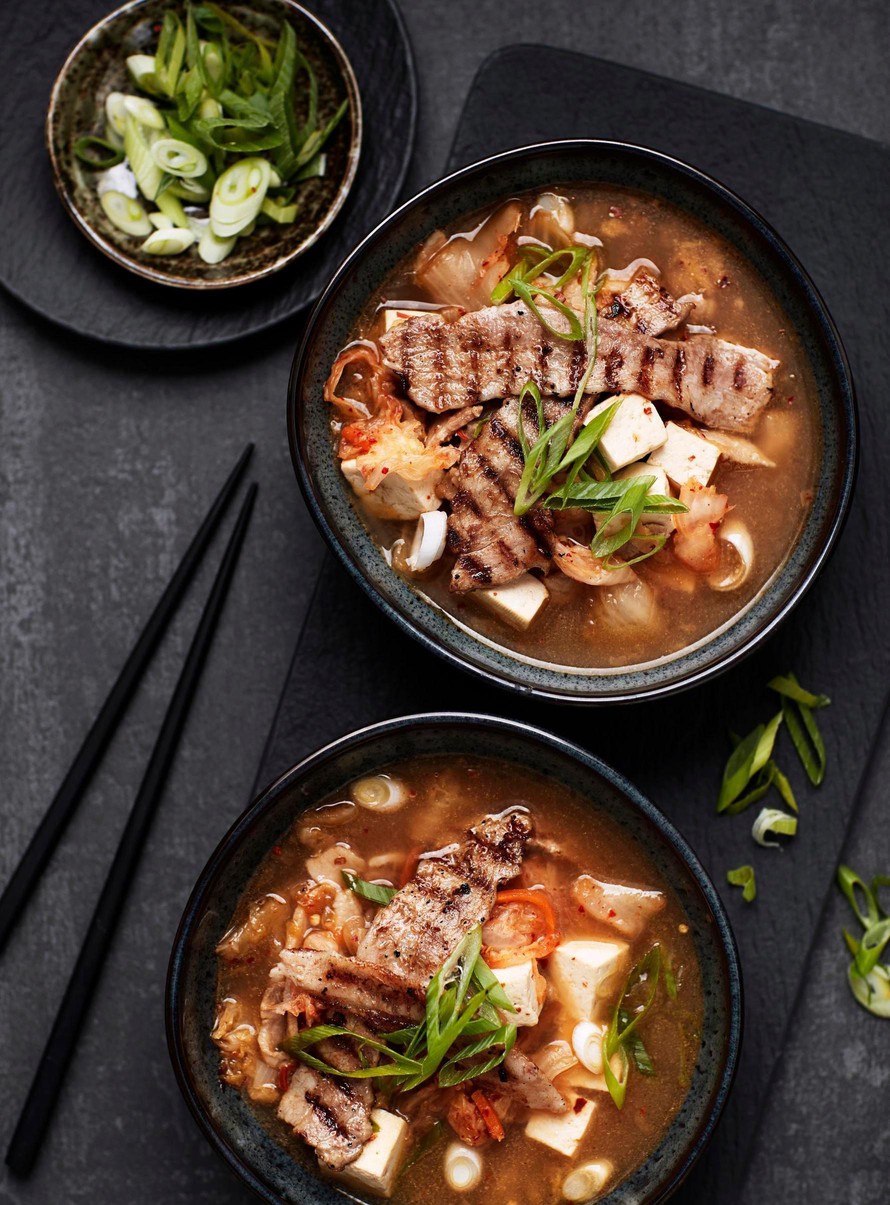 Korealaisen porsaanlihakeiton umamisuus perustuu kimchiin, kalakastikkeeseen ja soijaan. Makua riittää joka lusikalliseen!