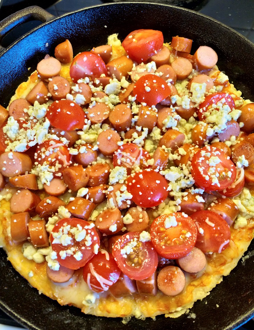 lisää vielä juustoraastetta päälle ja puolitetut kirsikkatomaatit.
