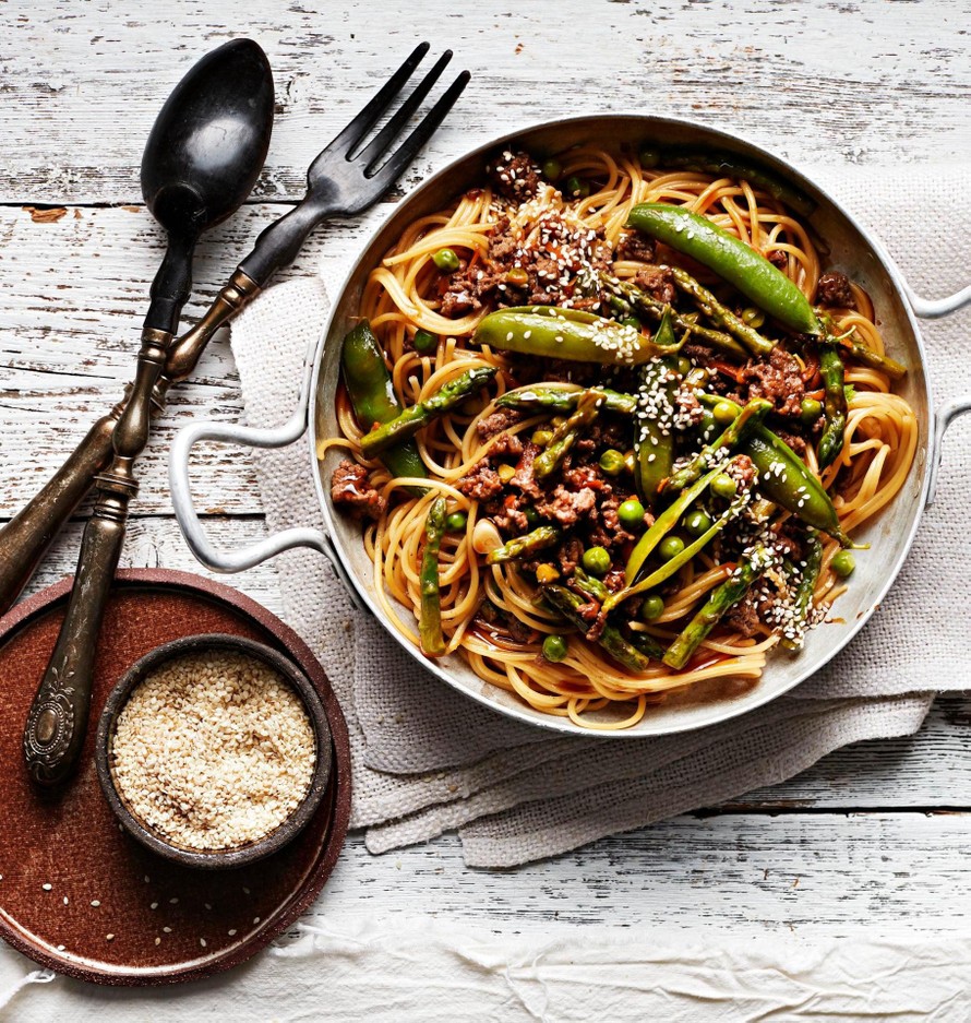 Kokeile hieman erilaista spagetti bolognesea! Aasialaisittain maustettu helppo pasta sopii loistavasti kiireiseenkin aikatauluun.