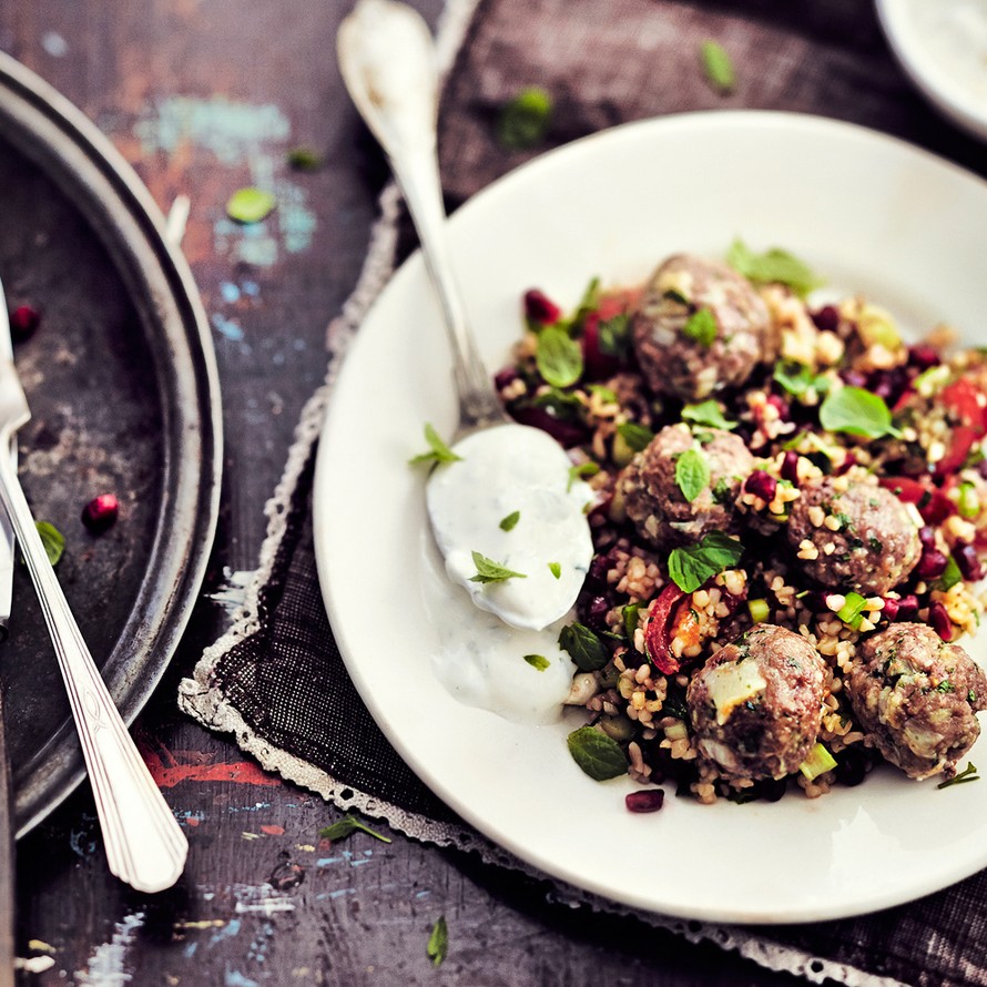 - Pyörittele massasta lihapullia. Paista lihapullia 180-asteisessa (kiertoilma)uunissa noin 15 minuuttia.