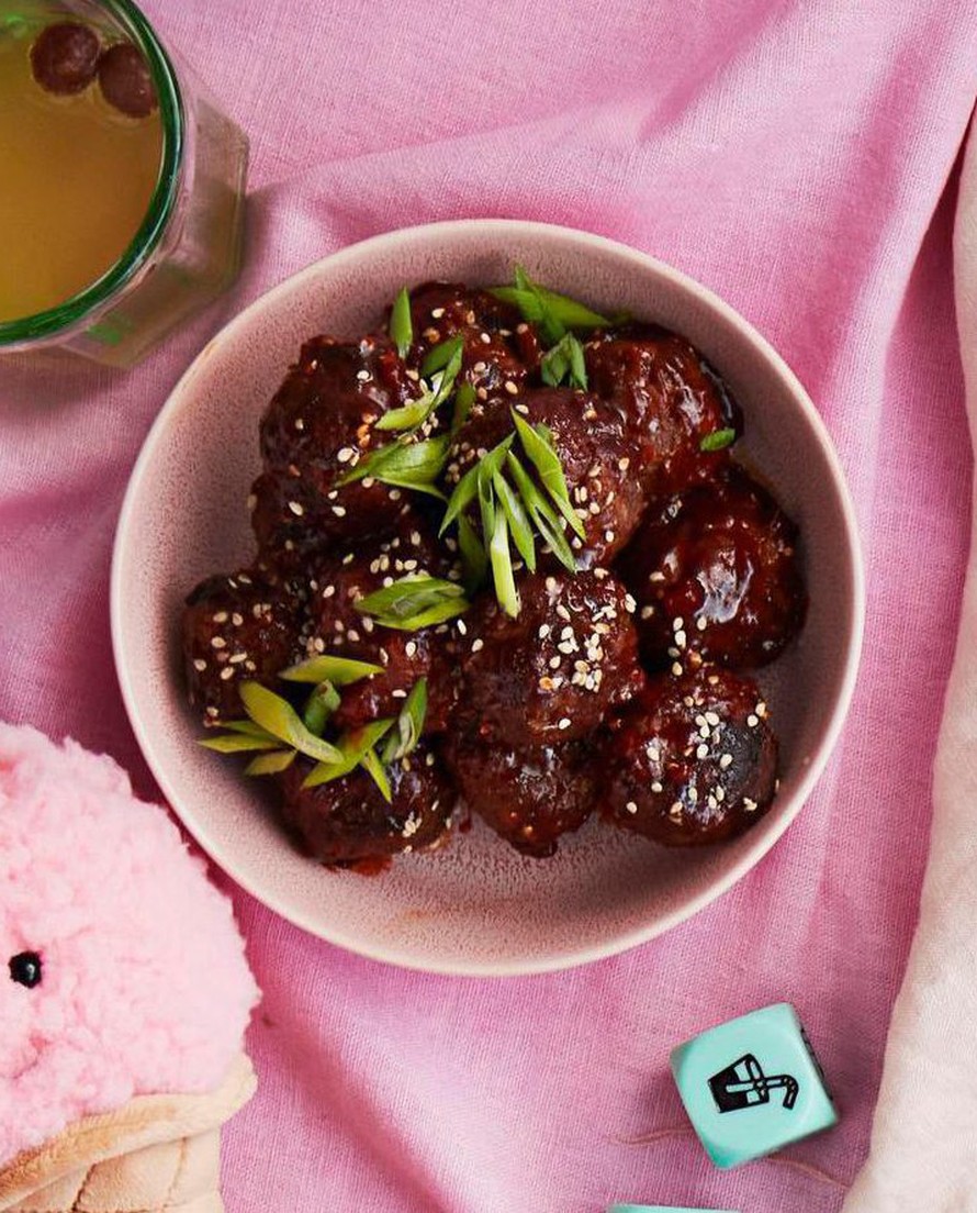 Korealaiset lihapullat ovat makujen ilotulitus! Gochujang-tahna maustaa taikinaa ja glaseeraukseen käytetään jääkaapista löytyvää hilloa.