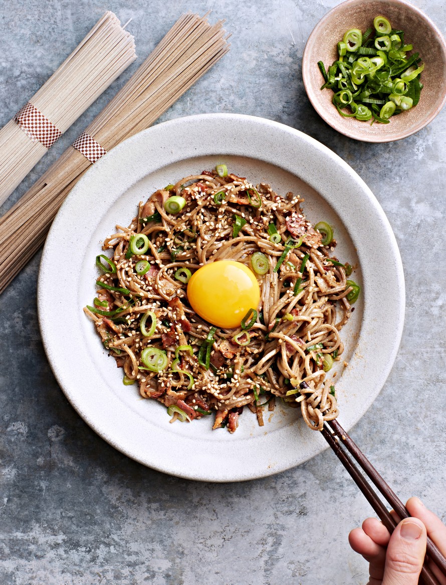 Moderni misocarbonara yhdistää japanilaisen ja italialaisen ruokakulttuurin. Sobanuudelit yhdistyvät pekoniin ja kananmunankeltuaisiin misokastikkeen avulla.