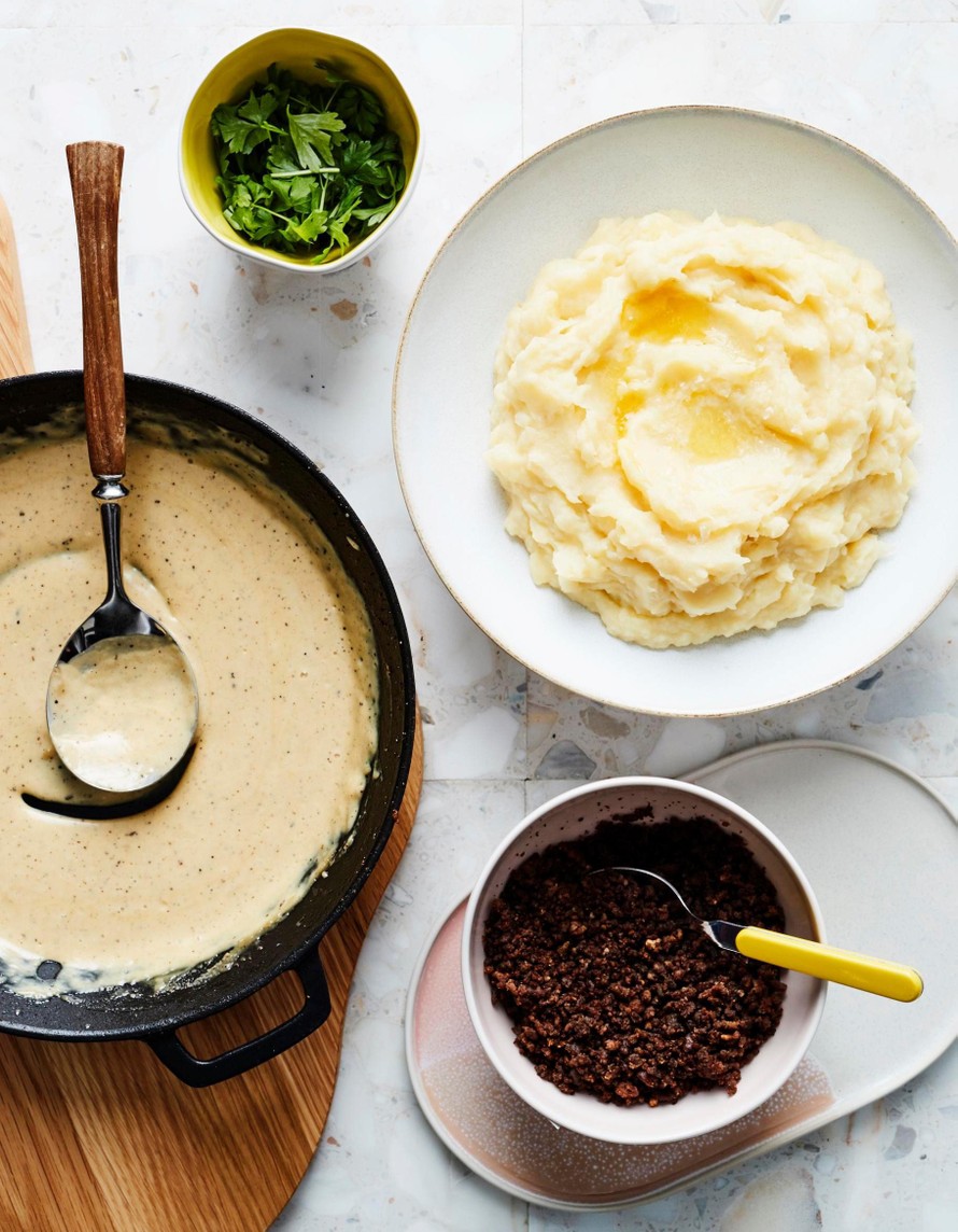 Rapeaa jauhelihamurua, kermaista kastiketta ja salt & vinegar -sipsien koukuttavaan makumaailmaan viritettyä perunamuusia. Tämä on ruokataivas!