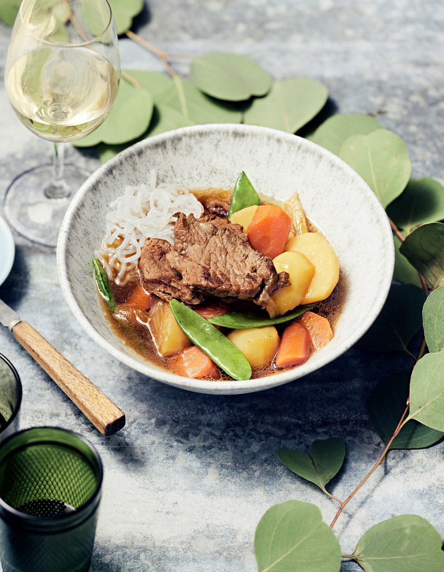 Lempeän makuinen nikujaga on japanilaisten herkullinen ja vikkelä vastine lihakeitolle tai padalle. Naudan ulkofilee ja kasvikset kypsyvät kirkkaassa dashi-liemessä puolessa tunnissa.