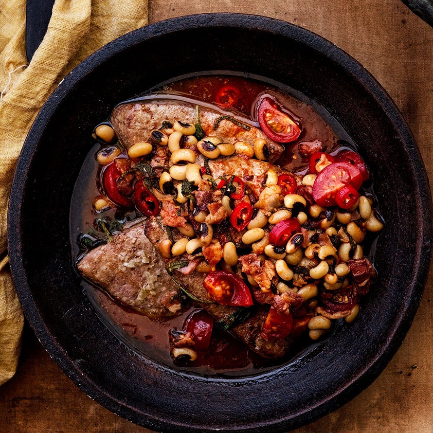 - Valmista ensin papupata ja polenta (ks. ohjeet alla) ja paista maksa vasta juuri ennen tarjoilua.