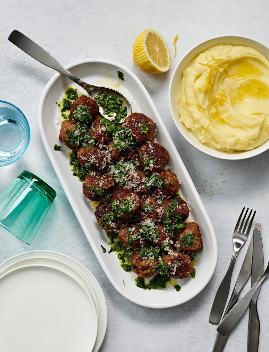 Löytyykö jääkaapistasi pala hieman kuivahtanutta parmesaania? Raasta se lihapullataikinaan! Parmesaani antaa lihapullien makuun herkullista syvyyttä. Seurana maistuu sitruunan piristämä muusi.