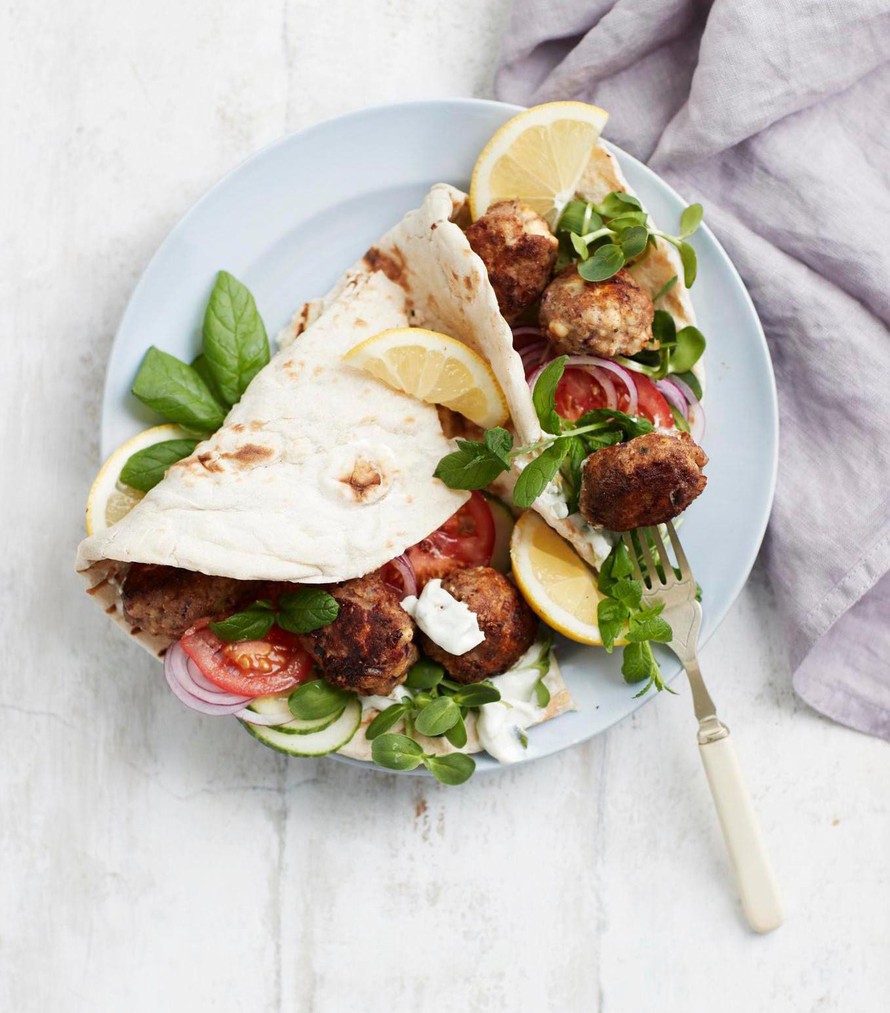 Tarjoile kreikkalais-henkiset feta-lammaspyörykät pitaleivän sisällä.