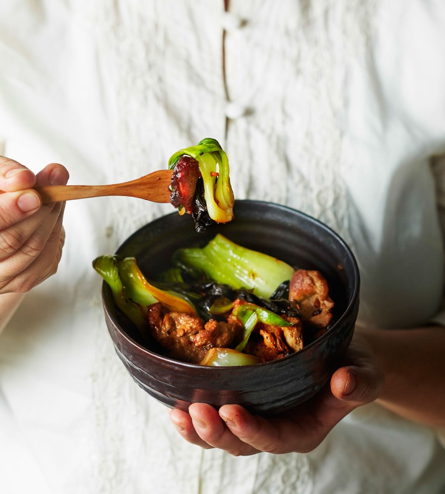 - Kuumenna 2 rkl öljyä pannussa tai wokissa. Paista possusuikaleita 3–5 minuuttia ja siirrä sivuun. Lisää 2 rkl öljyä pannuun ja paista valkosipulia ja inkivääriä 1 minuutti. Lisää sienet ja vihannekset ja paista korkeassa lämpötilassa 2–3 minuutta. Lisää paistetut lihat joukkoon.