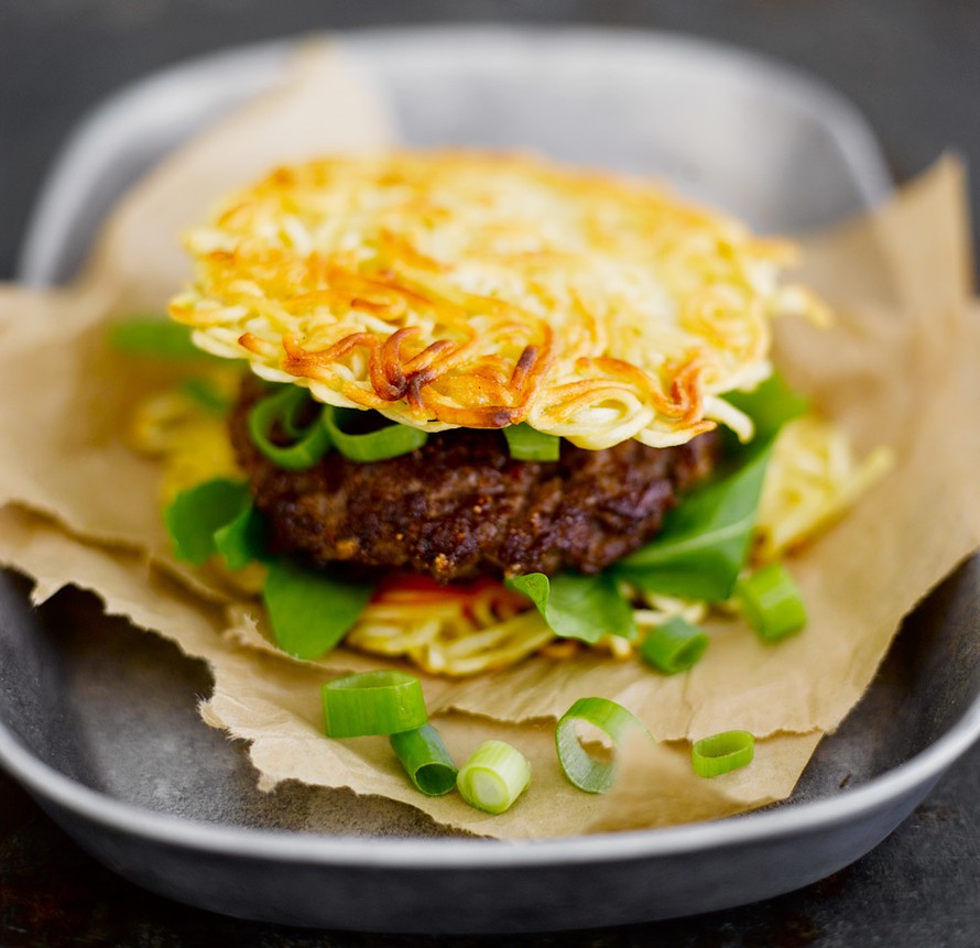 Vinkki! Riisinuudeleista syntyy gluteeniton ramenburger.