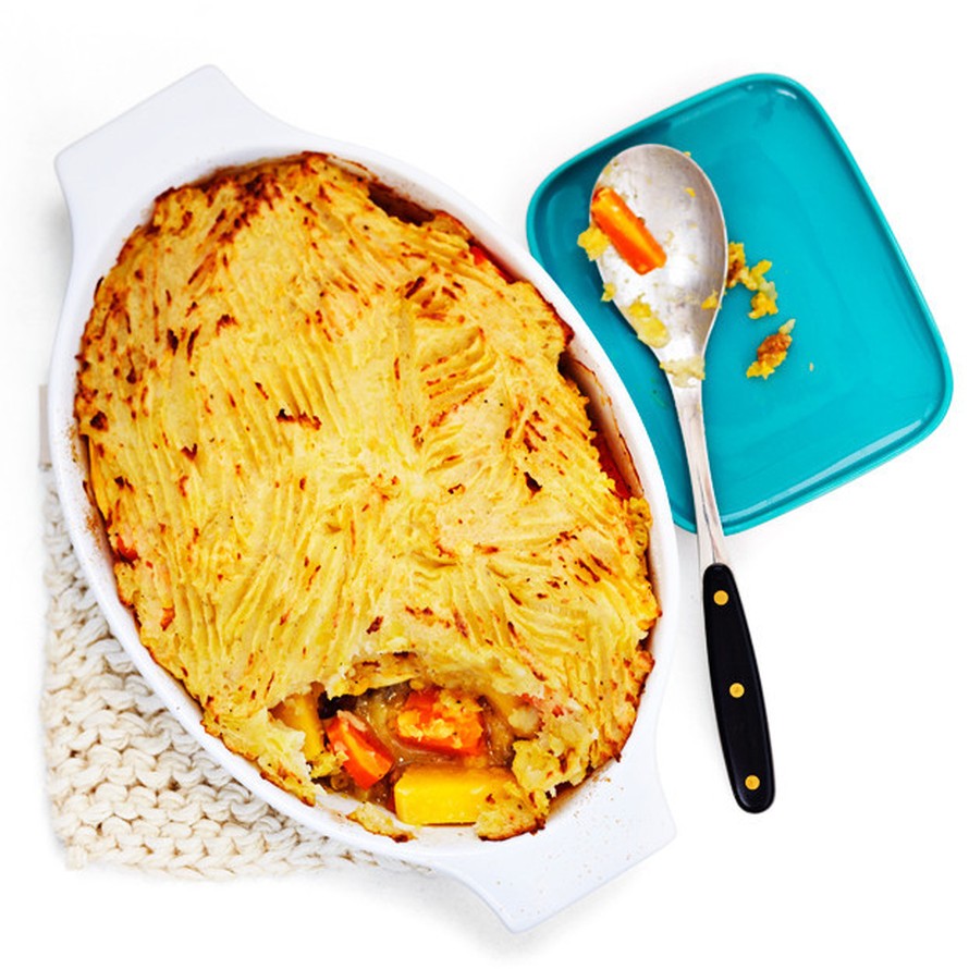 - Lisää pataan tarvittaessa nestettä ja anna porista. Levitä päälle perunapalsternakkasose.