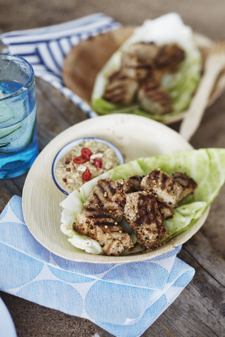 Jogurttimarinadissa possu mureutuu meheväksi ja saa täyteläisen maun. Tarjoa possu pehmeän tulisen mantelikastikkeen kanssa. Kesän grillisuosikki on valmis!