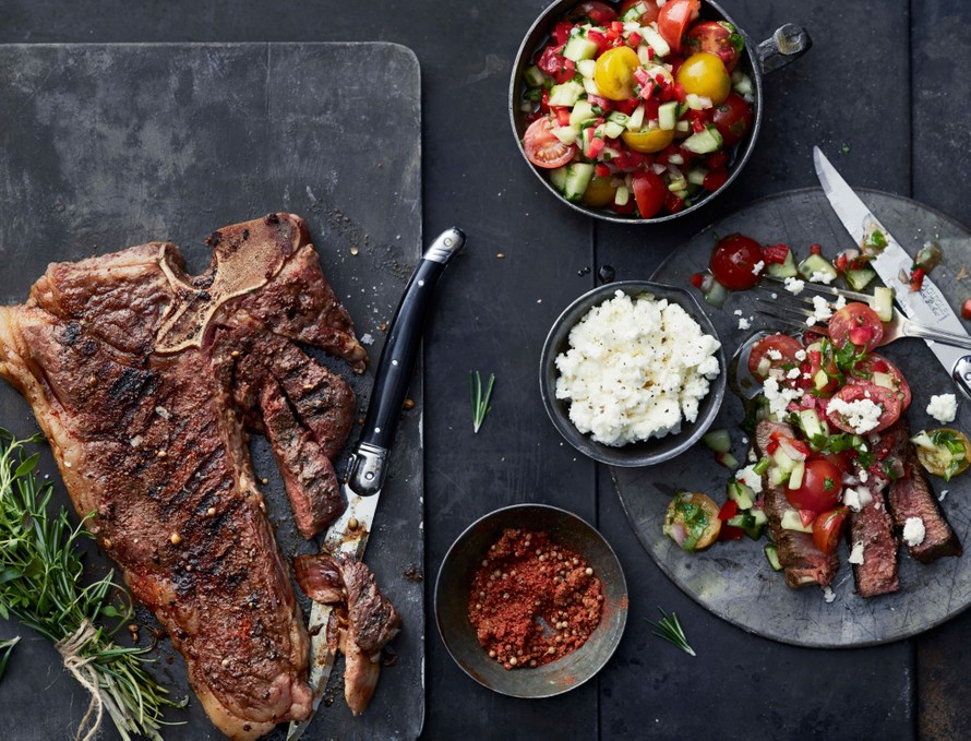 T-luupihvit, savupaprikarub ja horiatiki-salsa