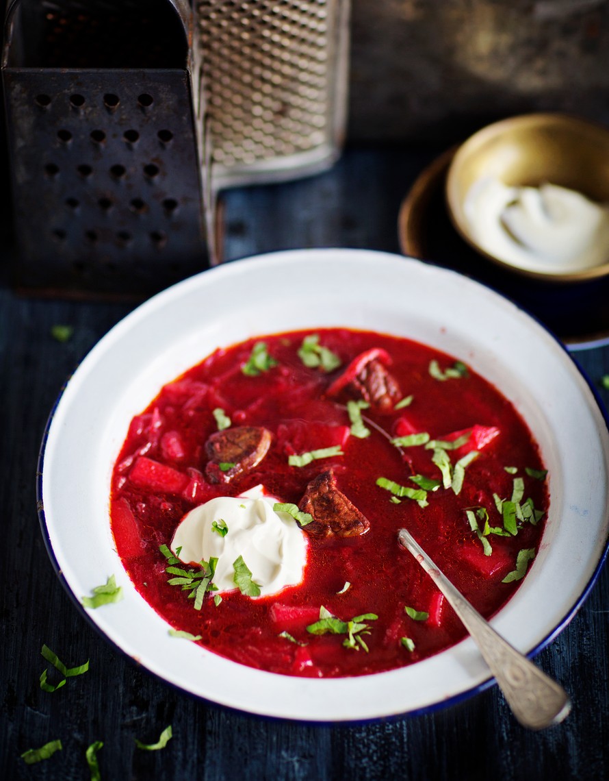 Borssikeiton tavallista nopeampi versio syntyy mureasta lihasta, vaikkapa naudan paahtopaistista.