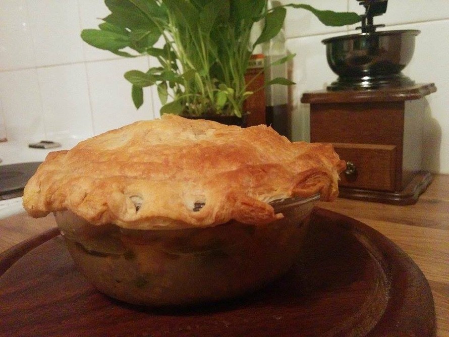 Tämä resepti on saanut innoituksensa Glorian Ruoka ja Viinin taannoisesta ohjeesta. Taikinakuoren alla möhivä muhennos on täydellinen illallisruoka, sillä sen ajoittaminen on helppoa. Kun nostelee alkuruoat, nakkaa vuoat uuniin ja pääruoka on hikoilematta ja vispailematta valmis alkuruokinen nauttimisen jälkeen.