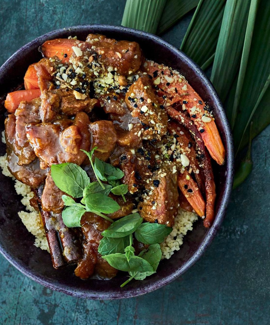 Paloittele aprikoosit ja lisää ne pataan. Kypsennä vielä noin 15 minuuttia tai kunnes lammas on todella mureaa. Hienonna minttu ja lisää se pataan. Halutessasi voit kuutioida mukaan myös säilötyn sitruunan. Tarkista maku, lisää pippuria ja tarvittaessa suolaa. Tarjoa pata dukkahjuuresten ja kuskusin kanssa.