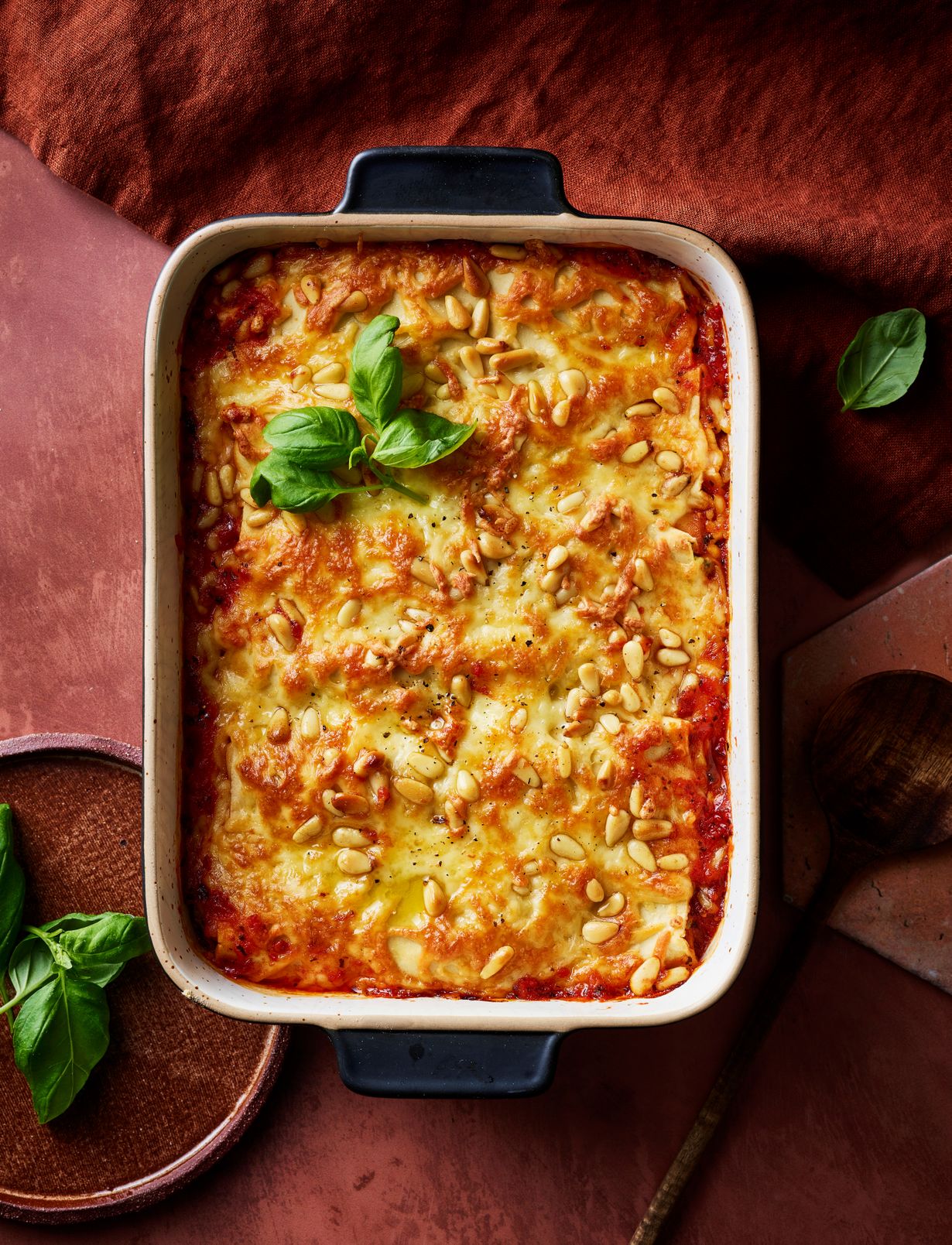 Nämä mehevät cannellonit saavat täytteekseen ricottaa, pinaattia ja parmankinkkua. Lopuksi se kuorrutetaan mozzarellajuustolla ja pinjansiemenillä.