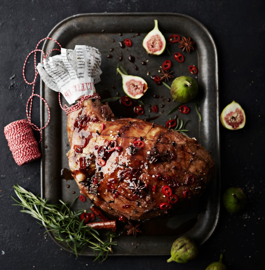 Tässä takuuvarma perusohje potkallisen joulukinkun paistamiseen. Lopputulos on kuitenkin kaikkea muuta kuin tavanomainen, kun kinkku kuorrutetaan chilin ja inkiväärin maustamalla karamellikastikkeella.