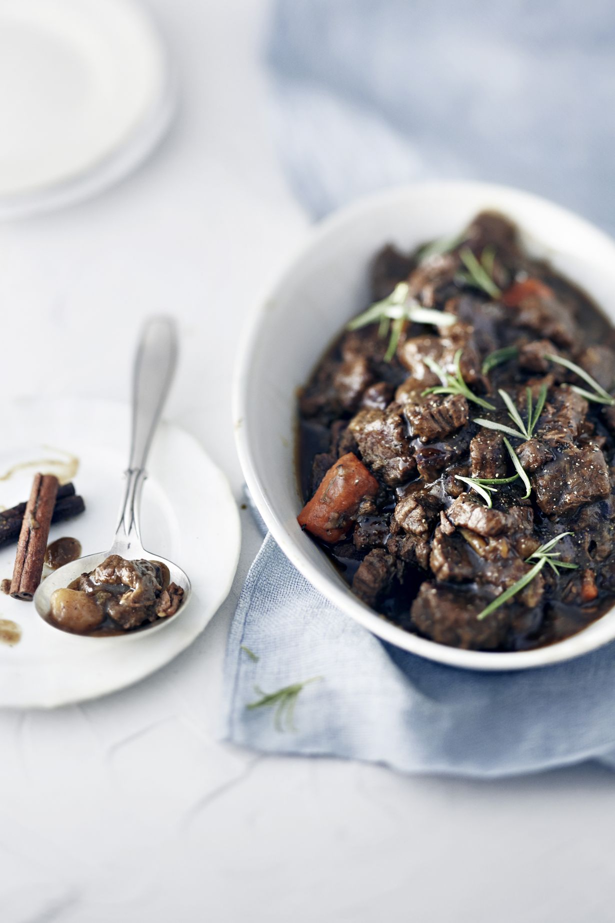 - Laita sekaan jokaista pippuria neljä kappaletta, ruokalusikallinen karkeaa merisuolaa sekä laakerinlehdet. Sekoita, laita kansi päälle ja siirrä pata uuniin kahden tunnin ajaksi.