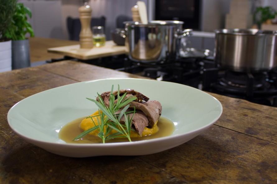 Lammaspaisti valkoviinissä ja bataattipyreetä