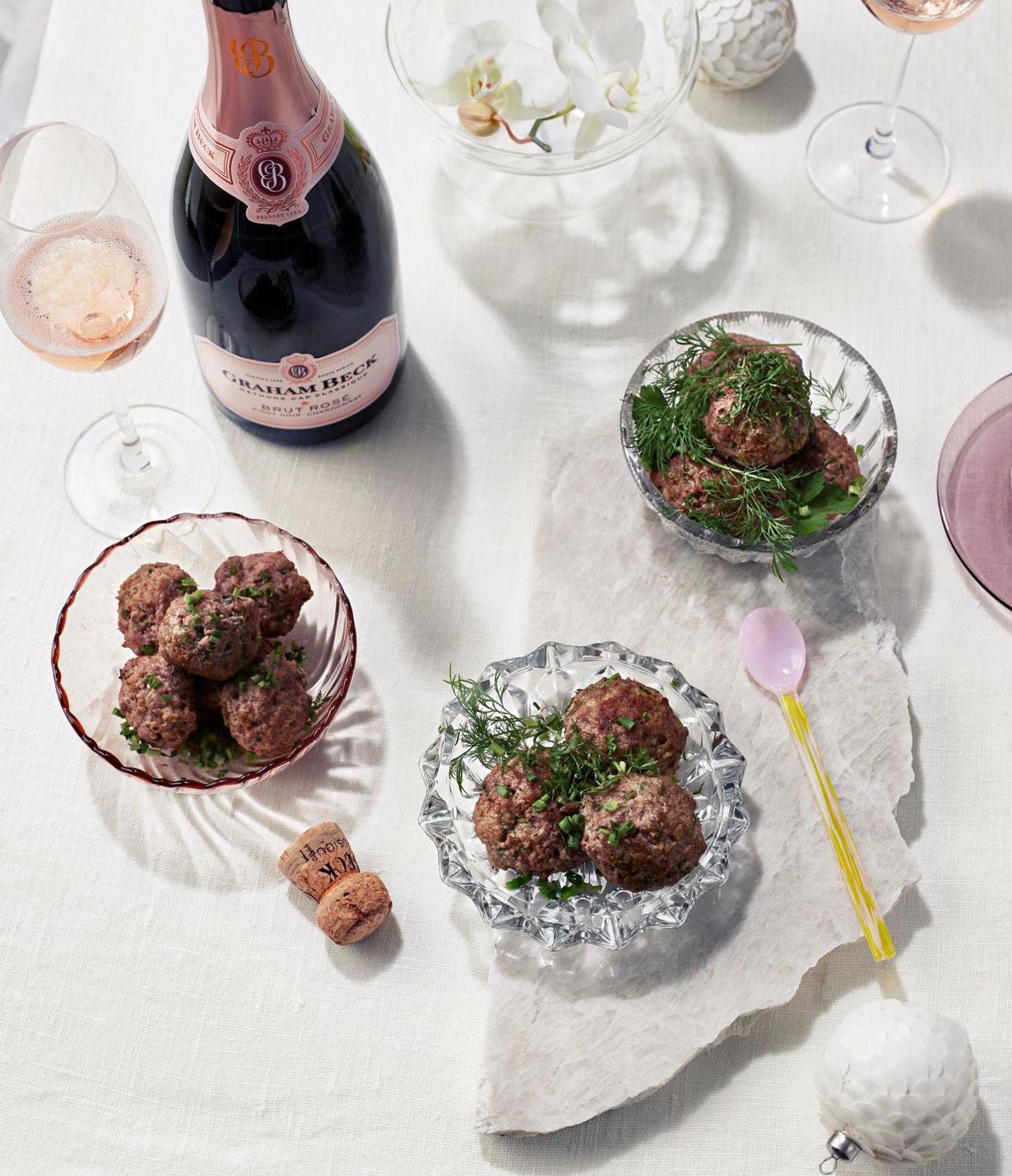 Lihapullat voi viimeistellä vielä erilasilla yrteillä ennen tarjoilua. Ne toimivat hyvin sellaisenaan esimerkiksi cocktailpaloina, mutta ne voidaan tarjota myös erilaisten lisukkeiden kanssa.