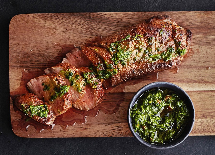 - Leikkaa liha viipaleiksi ja levitä päälle vihreää harissaa.