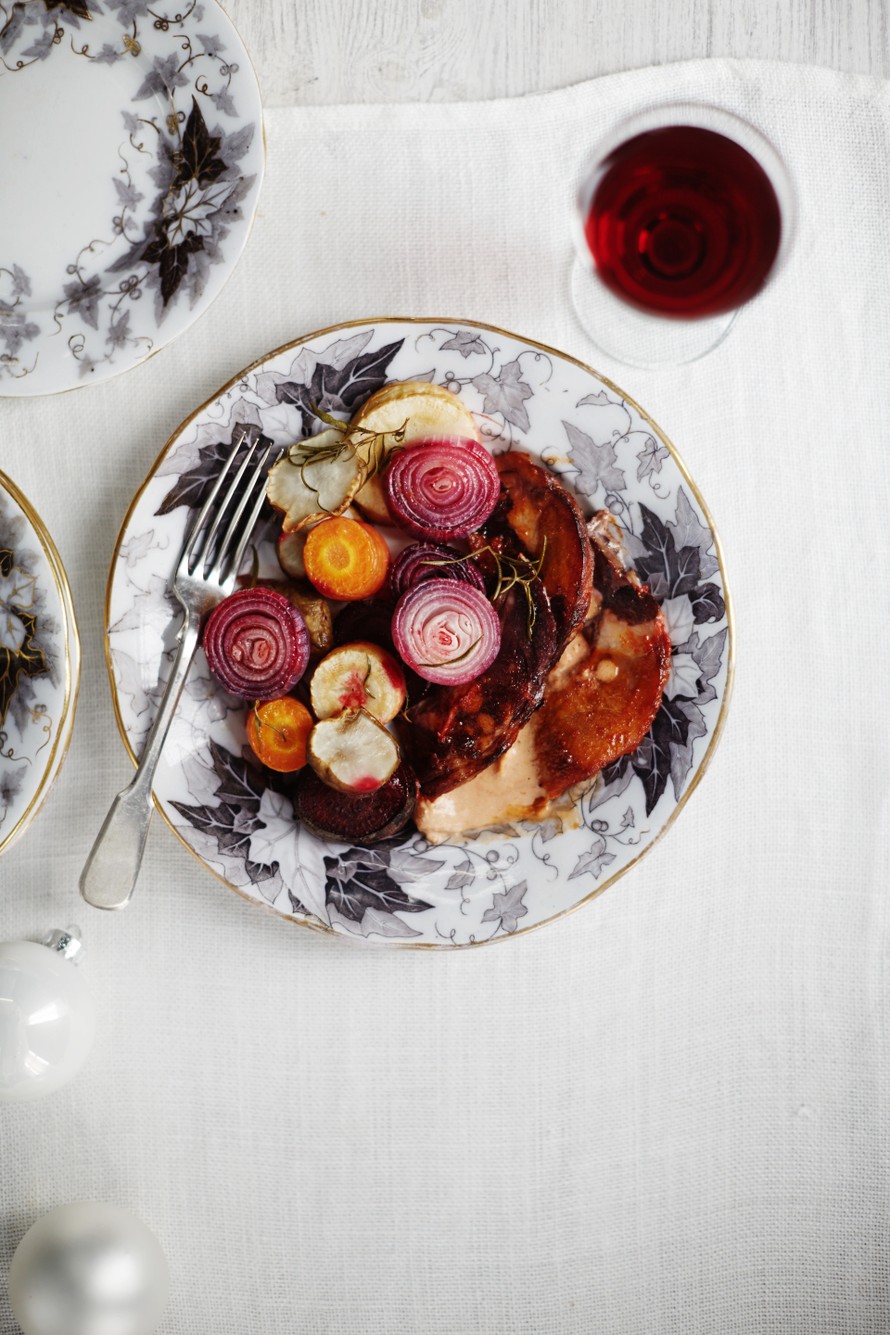 Kinkku saa uuden tulemisen, kun viipaleet marinoidaan punaviinissä ja hunnutetaan kermalla.