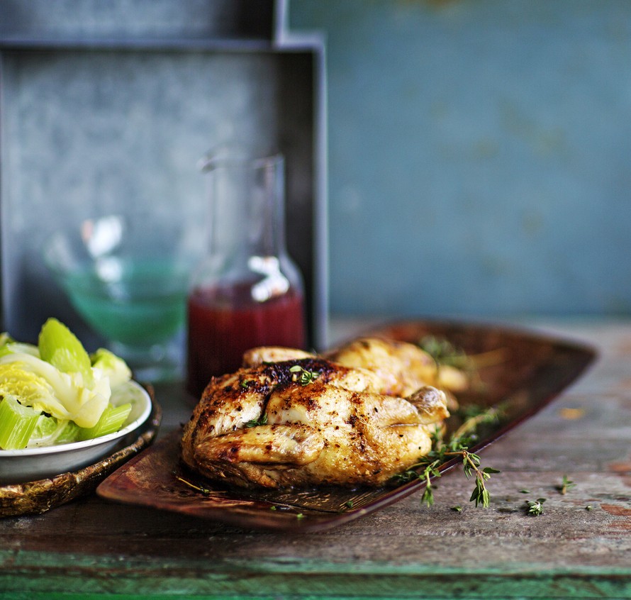 Paahdettu kevätkananpoika marinoituu muutaman tunnin dijoninsinapissa ja hunajassa. Nosta pöytään sen rinnalle savoijinkaalista ja fenkolista haudutettu kermainen paistos ja tyylikäs mustaherukkakastike.