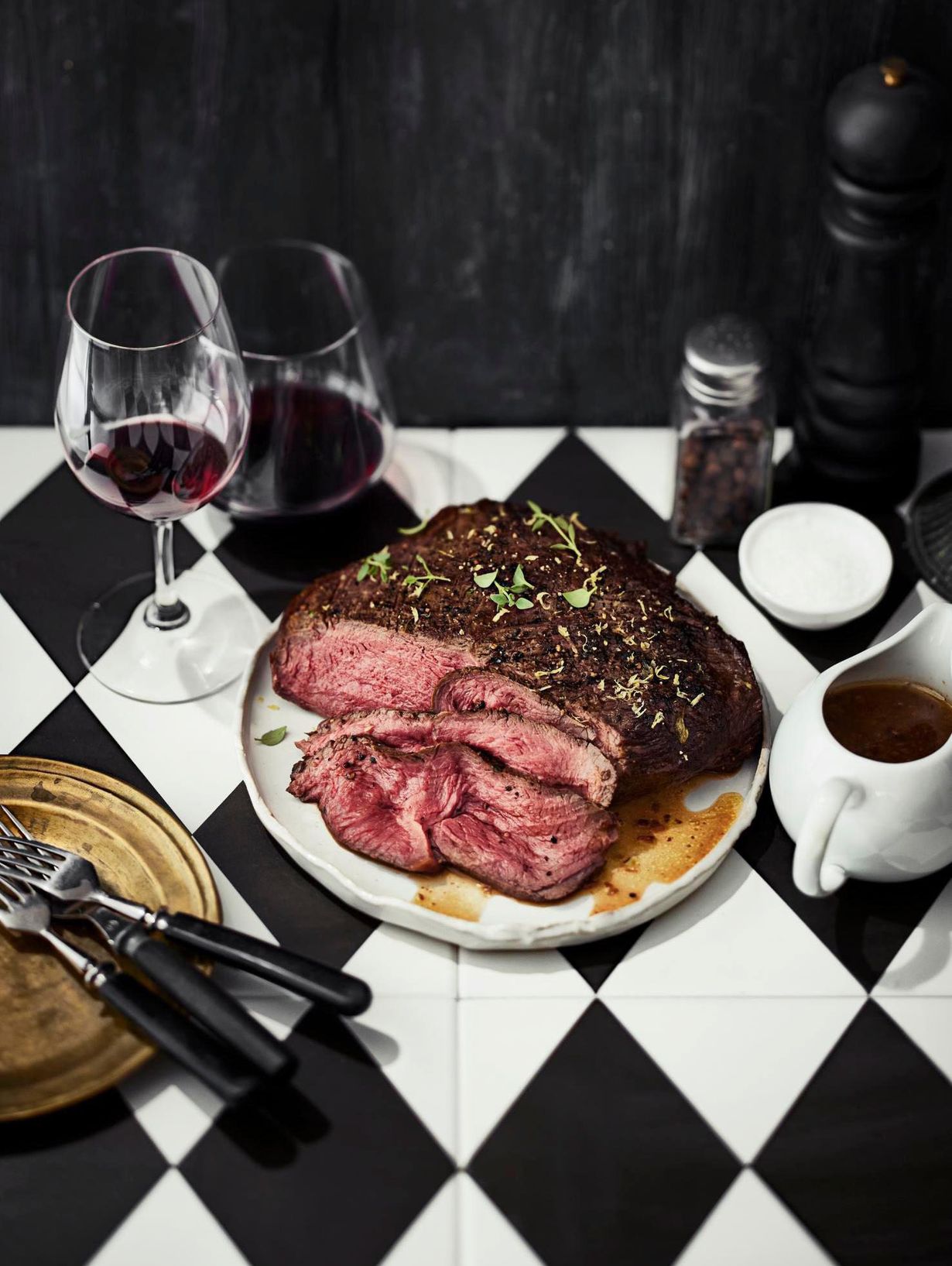 Laita paisti vuokaan. Työnnä paistolämpömittari paksuimpaan kohtaan lihaa. Kypsennä 125-asteisessa uunissa noin 1 t 30 min, kunnes mittari osoittaa 56 astetta ja liha on kypsyysasteeltaan medium.
