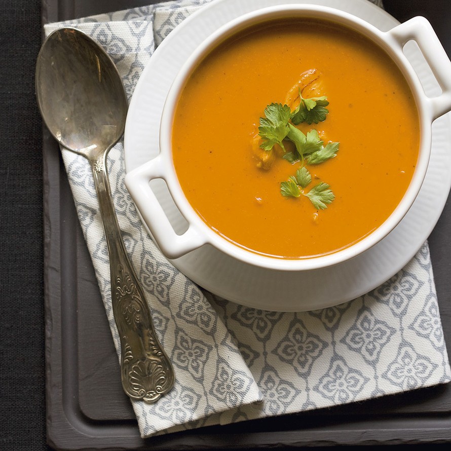 Kauniin keltaisen keiton väri tulee currytahnasta.