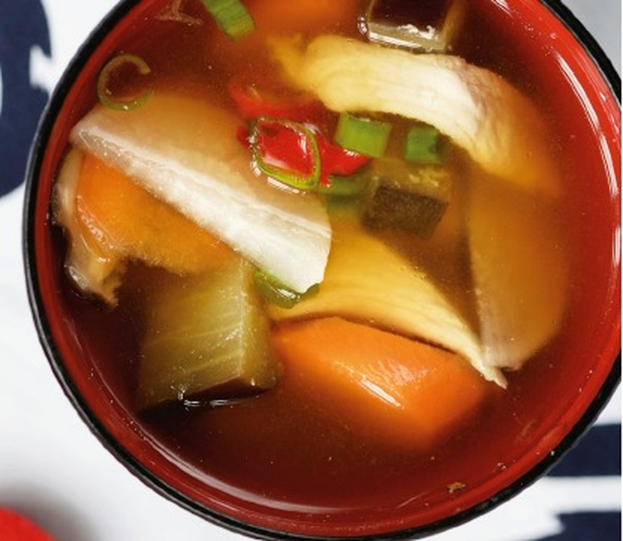Vinkki! Tarjoiluvaiheessa voit lisätä broilerikeiton pinnalle tuoretta, ohueksi viipaloitua inkivääriä ja sulatettuja pakasteherneitä.