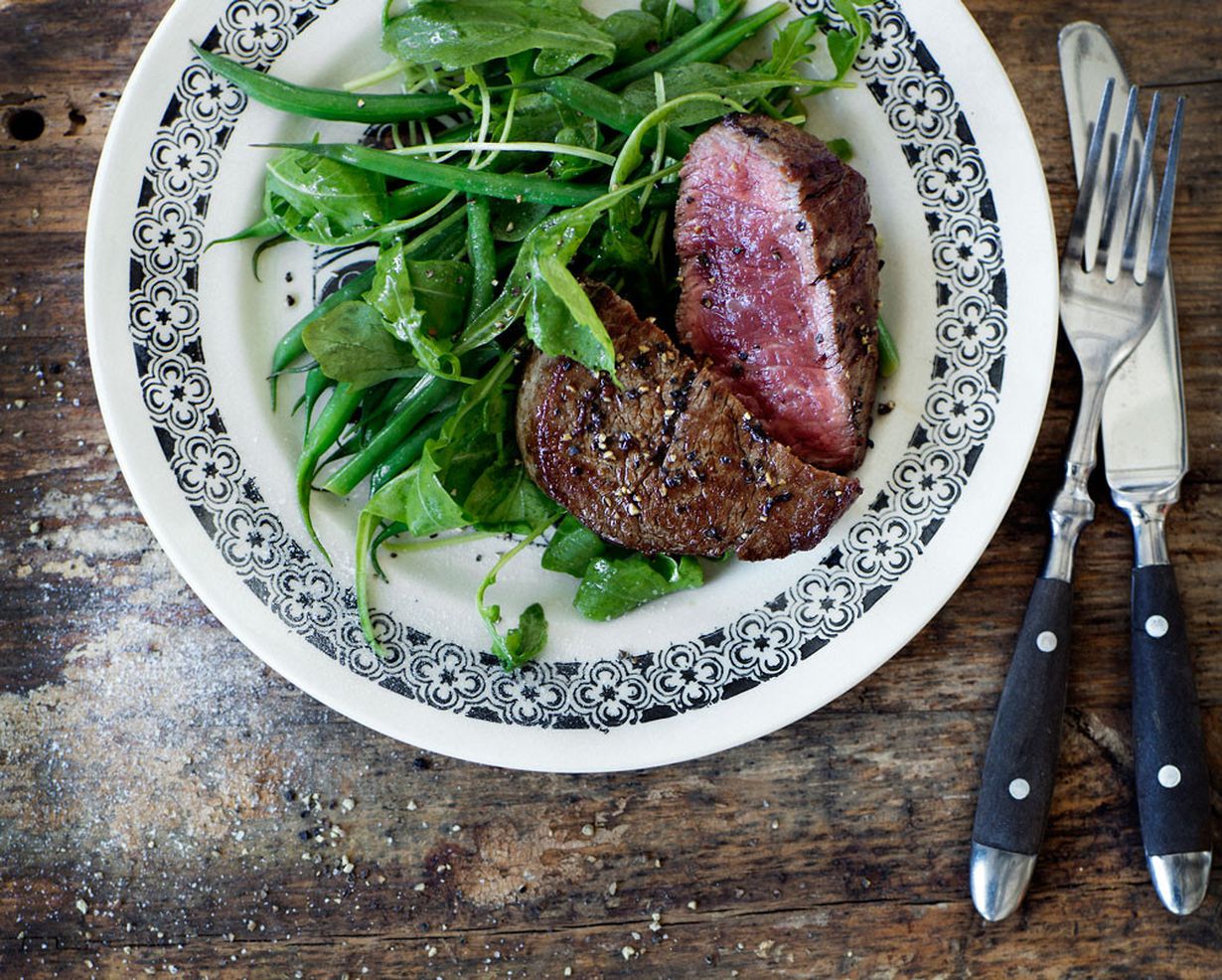 - Tarjoa pihvi etikkapapujen kanssa. Kääntele rucola papuihin juuri ennen tarjoamista.
