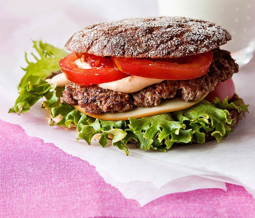 - Paahda leivät. Kokoa hampurilaiset. Levitä toiselle leivälle hampurilaismajoneesia. Laita päälle salaattia, vihanneksia, juustoa ja pihvi. Tarjoa heti.