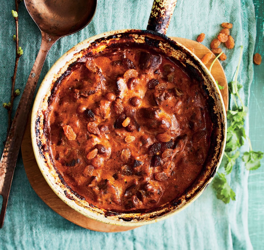 - Lisää kaikki loput ainekset paitsi jogurtti. Nosta pata 175-asteiseen uuniin 2½ tunniksi. Sekoita lopuksi joukkoon jogurtti. Tarjoa riisin kanssa.