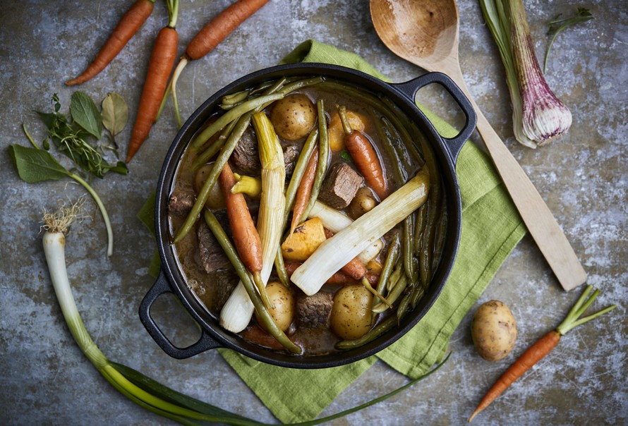 Täyteläinen, pitkään hautuva lihapata naudan ulkofileestä ja kasvimaan ensimmäisistä kasviksista muhii uunissa uskomattoman täyteläiseksi sunnuntaiherkuksi.