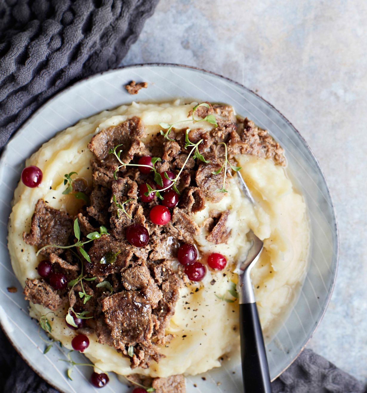 perunamuusia sekä karpaloita tai puolukoita